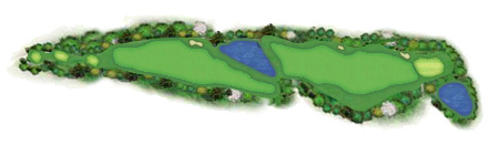 페어웨이 중앙을 가로지르는 해저드가 위치하고 있는 par5홀로서 거리욕심은 금물. 우드나 롱아이언 티샷이 안정적인 세컨IP를 확보할 수 있으며 해저드만 넘기면 무난하게 3온이 가능한 홀입니다.